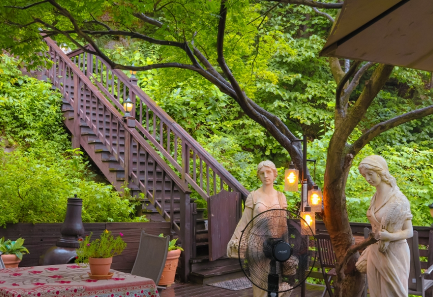 이 카페의 가장 큰 매력은 자연과의 조화예요. 카페 주변에는 울창한 나무와 아름다운 꽃들이 가득해요. 특히, 여름에는 시원한 바람이 불어와서 정말 기분이 좋답니다.