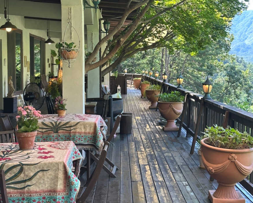 이 카페의 가장 큰 매력은 자연과의 조화예요. 카페 주변에는 울창한 나무와 아름다운 꽃들이 가득해요. 특히, 여름에는 시원한 바람이 불어와서 정말 기분이 좋답니다.