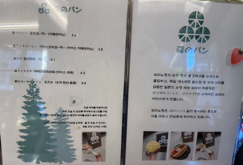안녕하세요! 오늘은 연남동에 위치한 감성 가득한 베이커리 카페, 모리노팡 에 대해 소개해 드릴게요. 이곳은 일본식 스타일의 베이커리로, 맛있는 빵과 함께 아늑한 분위기를 즐길 수 있는 곳이에요. 그럼, 모리노팡의 매력을 하나하나 살펴볼까요? 😊