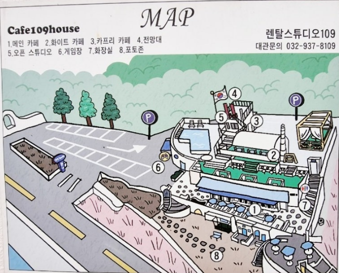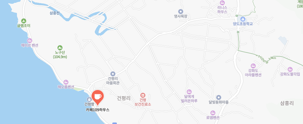 카페 109 하우스는 인천 강화군 양도면 해안서로에 위치해 있어요.
