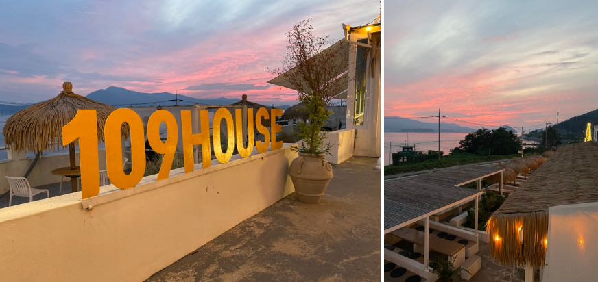 카페 109 하우스의 가장 큰 매력 중 하나는 바로 오션뷰와 일몰이에요. 해가 지는 순간, 하늘이 오렌지색과 분홍색으로 물들어가는 모습은 정말 장관이에요. 특히, 2층의 테라스에서 바라보는 일몰은 그야말로 환상적이에요. 친구들과 함께 앉아 일몰을 감상하며 이야기를 나누는 시간은 정말 소중한 기억으로 남을 거예요.