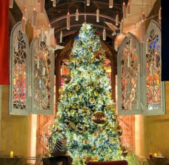 투하츠베이커리의 가장 큰 매력 중 하나는 바로 대형 크리스마스트리 포토존이에요! 이곳에서 사진을 찍으면 인스타그램에 올리기 딱 좋은 멋진 사진을 남길 수 있답니다. 친구들과 함께 멋진 포즈를 취해보세요! 🎉