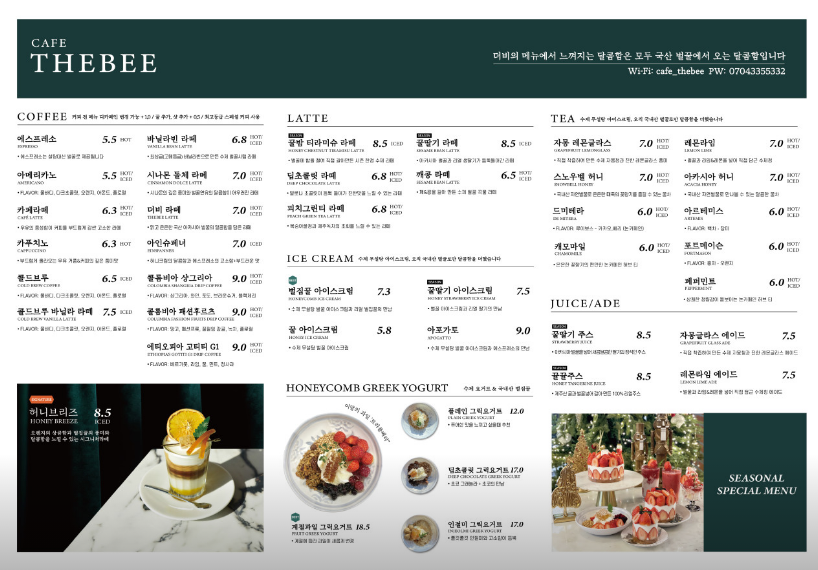 특히 추천하고 싶은 메뉴는 '허니 바스크 치즈케이크'와 '허니브리즈'예요. 허니 바스크 치즈케이크는 부드러운 치즈와 달콤한 꿀의 조화가 일품이에요. 가격은 13,800원으로, 크리스마스 분위기와 함께 즐기기 딱 좋은 디저트랍니다. 허니브리즈는 달콤한 꿀이 들어간 음료로, 겨울철에 따뜻하게 즐기기 좋아요. 가격은 8,500원이니 참고해 보세요!