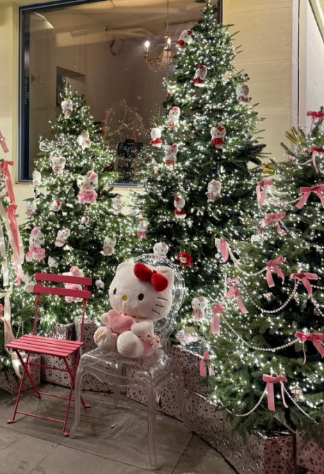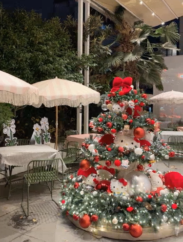 카페의 중심에는 귀여운 헬로키티 트리가 우뚝 서 있어요.