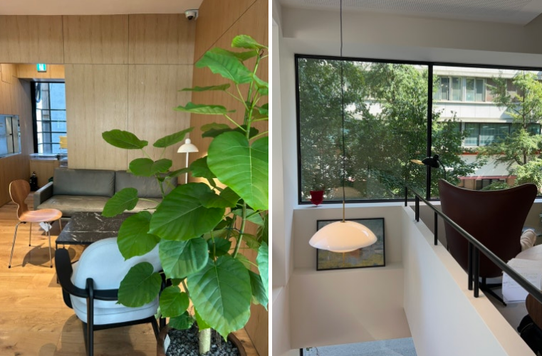 인테리어는 세련되면서도 아늑한 느낌을 주고, 곳곳에 놓인 식물들이 자연의 느낌을 더해줘요.