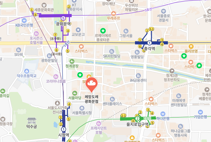 레망도레 광화문점은 광화문역 5번 출구에서 도보로 약 5분 거리에 위치해 있어요. 주변에는 경복궁, 청계천 등 관광명소가 많아서, 카페에서 여유를 즐긴 후에 산책하기에도 좋은 위치랍니다. 주차 공간도 마련되어 있어, 차량으로 방문하시는 분들도 편리하게 이용할 수 있어요.