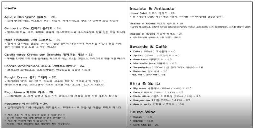 피자뿐만 아니라 파스타 메뉴도 만족도가 높은 편이에요. 전체적으로 ‘과하지 않은 맛’이 특징이라, 남녀노소 모두 부담 없이 즐기기에 좋아요.