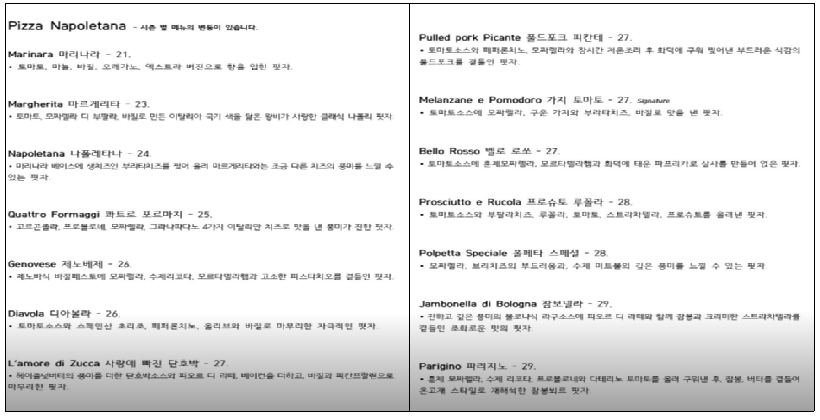 • 마르게리타 피자 : 토마토와 치즈의 기본에 충실한 맛