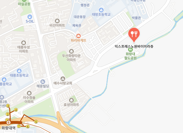 익스프레스노원바이미라쥬는 서울특별시 노원구 화랑로 608에 위치해 있어요. 대중교통을 이용하신다면, 지하철 7호선 화랑대역에서 하차 후 도보로 약 10분 정도 소요돼요. 주변에 주차 공간도 마련되어 있으니, 차를 이용하셔도 좋답니다.