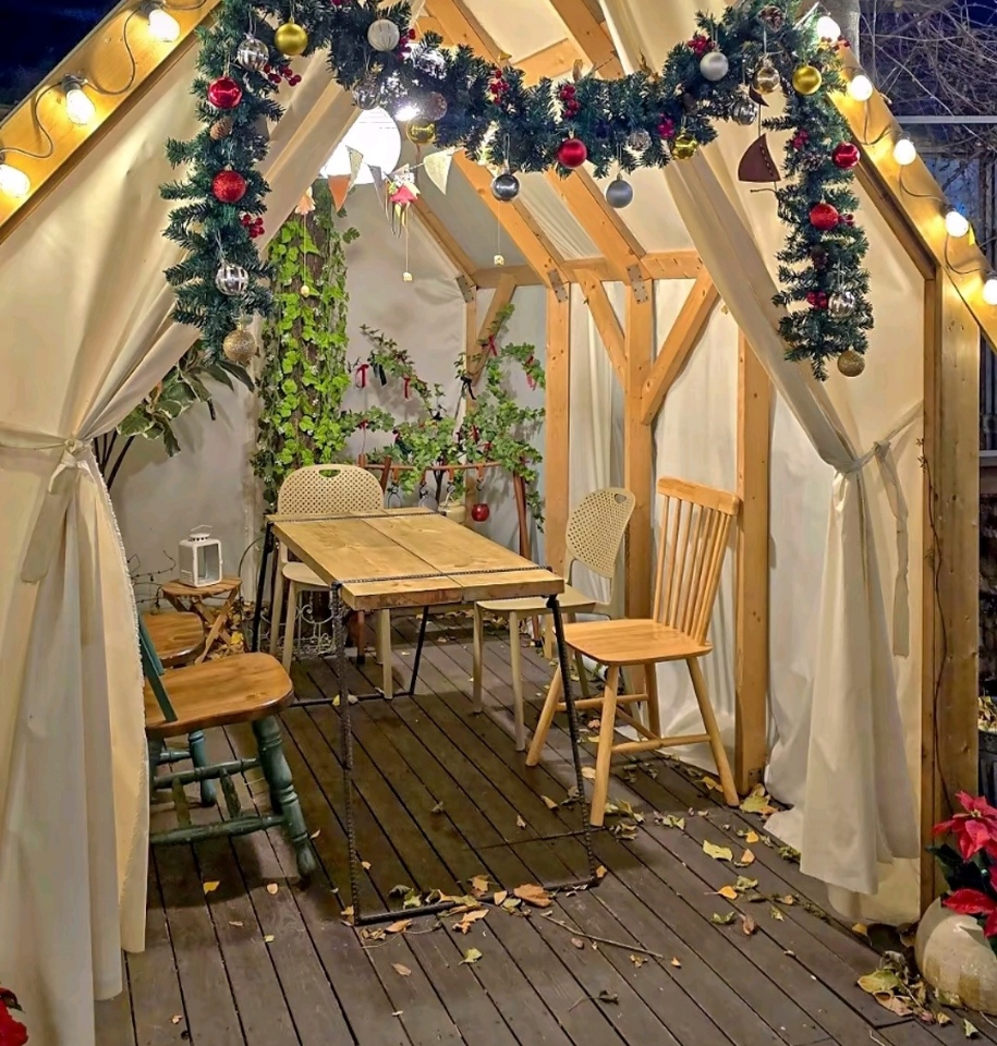 더가드너는 아늑한 오두막 형태의 카페로, 내부는 따뜻한 조명과 함께 크리스마스 장식으로 꾸며져 있어요. 특히, 오두막 안쪽에는 예약제로 운영되는 공간이 있어서 친구들이나 가족과 함께 특별한 시간을 보내기에 딱 좋아요. 4인 이상부터 예약이 가능하니, 미리 계획해 보는 게 좋겠어요.