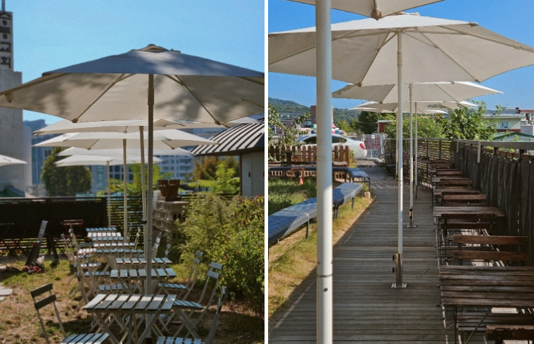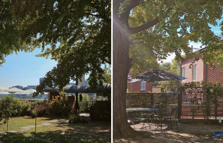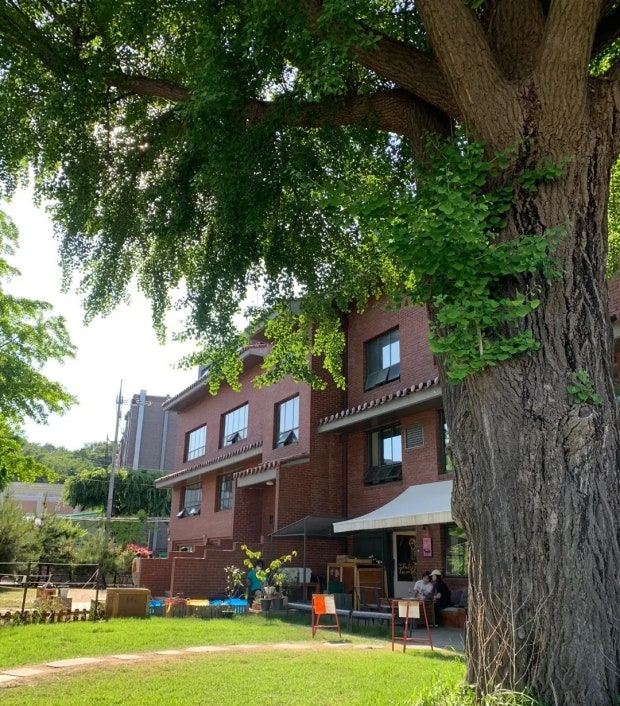외부 정원은 특히 인상적이에요. 큰 은행나무 아래에서 자연을 느끼며 커피를 즐길 수 있는 공간은 정말 특별하죠.
