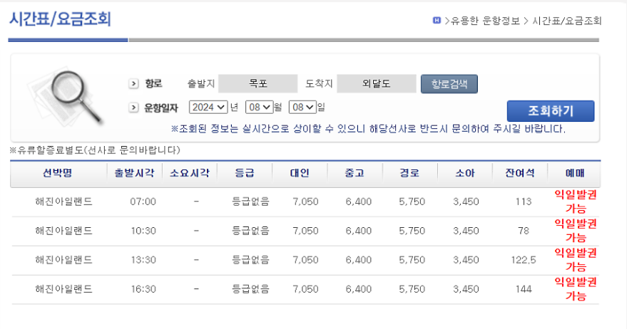 배편은 하루에 여러 차례 운행되며, 소요 시간은 약 50분 정도예요. 배를 타고 가는 동안 바다의 경치를 감상할 수 있어요.