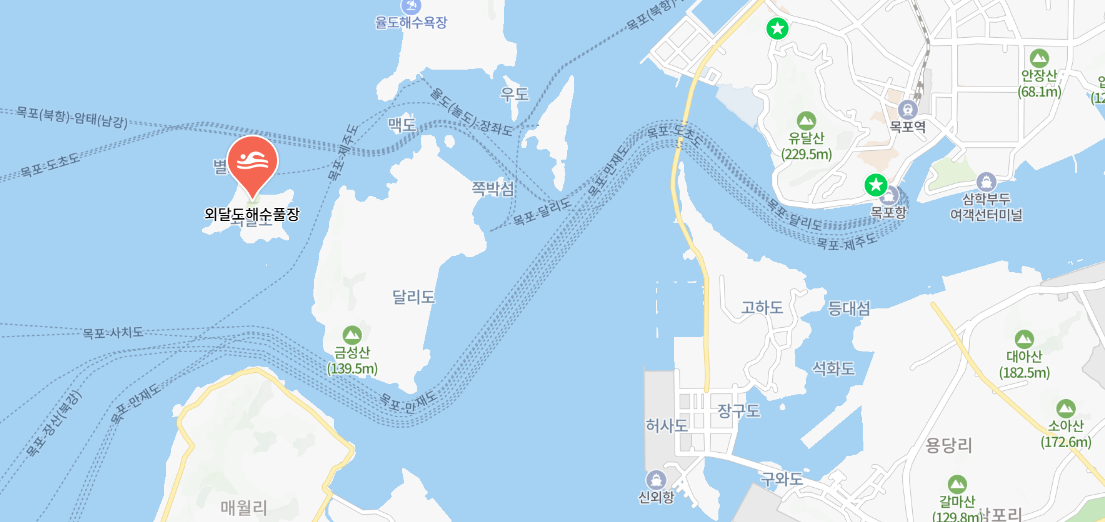 목포에서 외달도까지는 배를 타고 이동해야 해요.