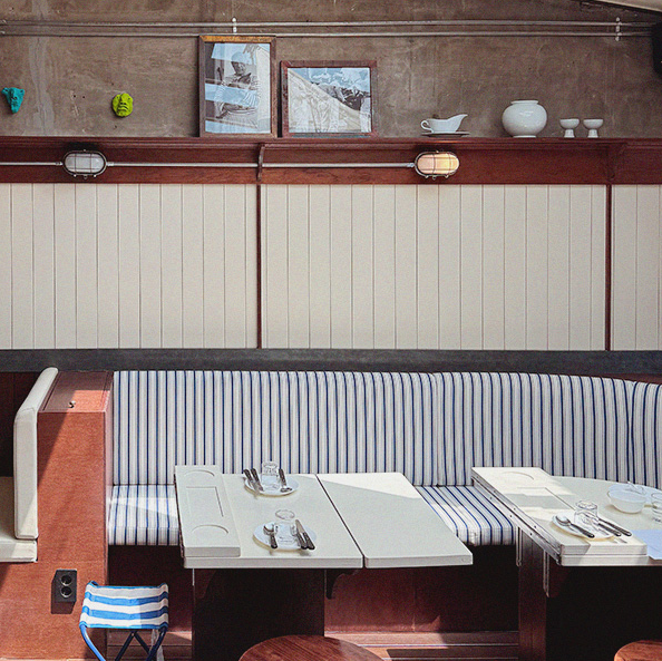 프랑스와 일본 감성의 절묘한 조화라고 표현할 수 있는 공간 구성은, 이름 ‘마리니에르’(프랑스 해양 감성에서 연상되는 선상 셔츠에서 비롯된 이름)처럼 요트 내부를 연상시키는 디자인과 목재, 화이트 톤의 인테리어로 느낄 수 있답니다.