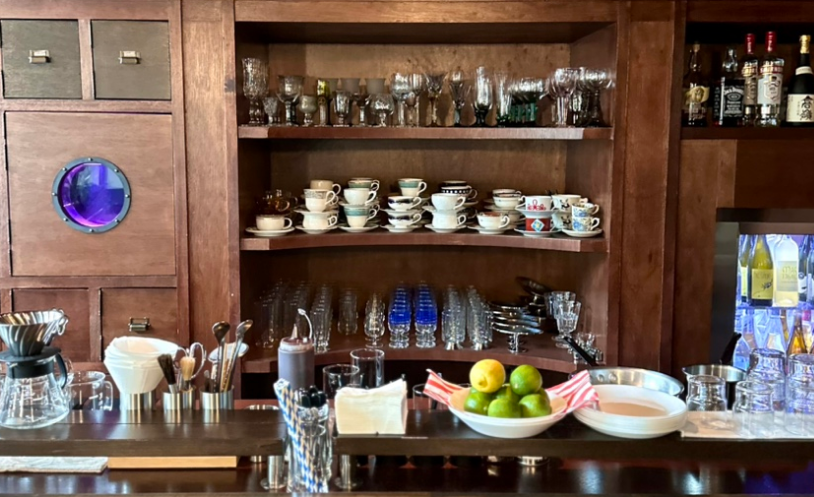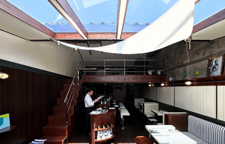 - 요트 콘셉트의 내부 인테리어 : 곳곳에 배를 연상시키는 장식과 색감