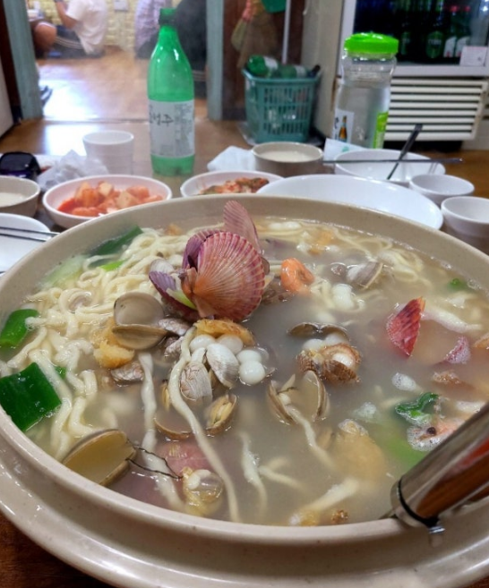 해물 칼국수, 우럭매운탕 : 무의도에서 유명한 해물 칼국수와 우럭매운탕은 꼭 맛봐야 해요. 신선한 해산물이 듬뿍 들어가서 국물이 진하고 맛있어요.