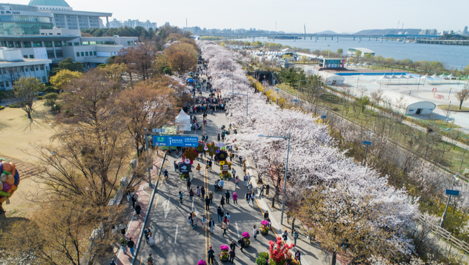 영등포 여의도 봄꽃축제는 윤중로(Yeouiseo-ro) 벚꽃길과 한강공원 여의도지구 일대에서 열려요. 이 길은 약 1.7km에 걸쳐 왕벚나무가 늘어서며 봄마다 ‘핑크빛 터널’로 변하는 서울의 상징적 벚꽃 명소예요.