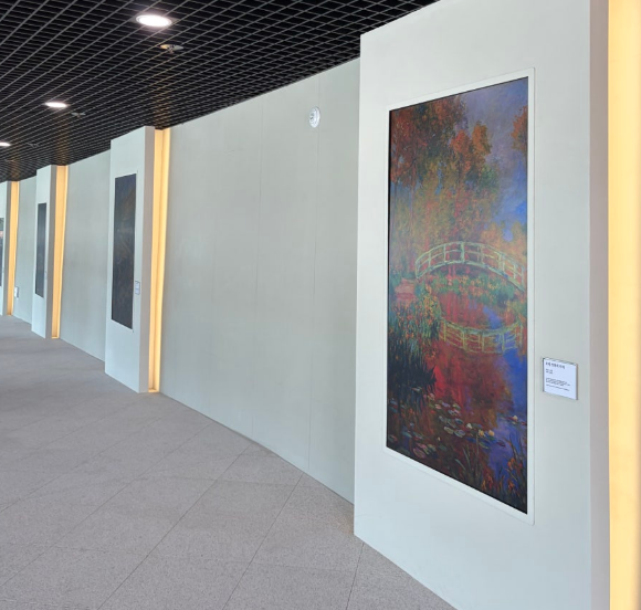 전시관 내부에는 AI 기반 미디어아트 공간이 펼쳐져요. 명화를 재해석한 디지털 작품과 빛과 음악이 결합된 몰입형 연출, 그리고 벽·바닥 전체를 활용한 공간형 전시가 특징이에요. 특히 ‘빛의 갤러리’는 사진보다 직접 보는 것이 훨씬 압도적입니다.