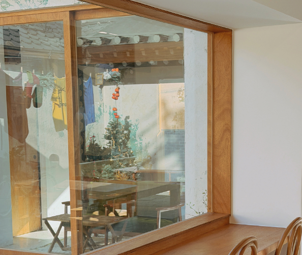 • 햇살이 들어오는 마당 뷰 공간 : 자연광이 풍부해 사진 촬영에 좋고 브런치 자체의 여유로움을 느끼기 좋아요.