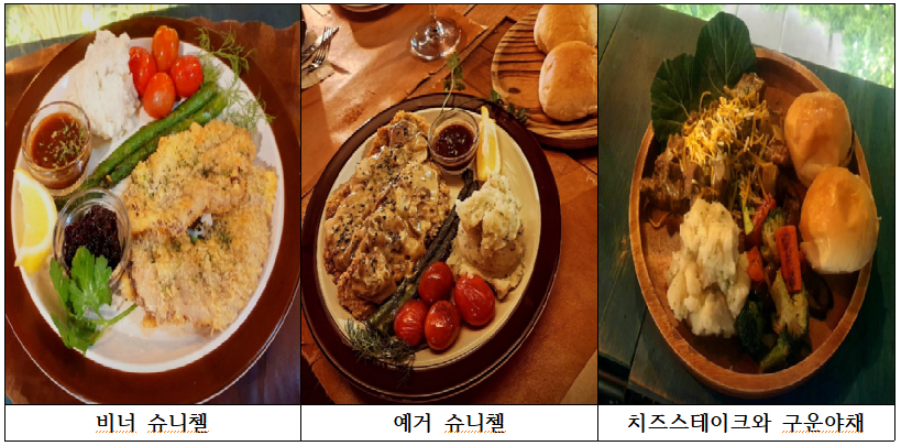 '숲길 holzwege'의 메뉴는 다양해요. 와인, 칵테일, 하이볼, 맥주 등 다양한 음료를 제공하고, 음식으로는 슈니첼, 스튜 등 독일식 요리도 맛볼 수 있어요.