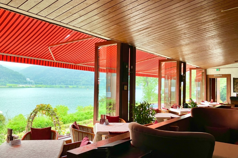 이곳의 하이라이트는 단연 창가 자리입니다. 큰 통창 너머로 펼쳐지는 북한강 뷰는 계절에 따라 전혀 다른 매력을 보여줘요.