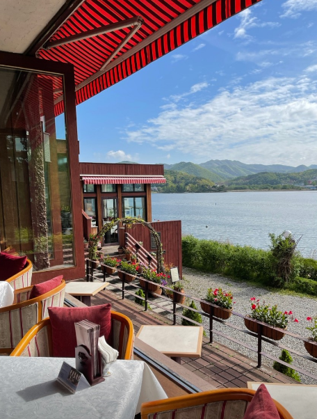 왈츠와 닥터만은 남양주 북한강 라인에 위치해 있어 드라이브 코스로도 유명해요. 서울에서 차로 약 40~50분 정도면 도착 가능해 주말 나들이 장소로 부담 없이 방문할 수 있는 곳입니다. 특히 카페 앞에 펼쳐진 북한강 호수뷰가 이곳의 핵심 포인트예요.