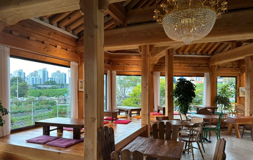 이곳은 한옥 인테리어와 넓은 실내외 공간으로 유명한 카페예요. 특히, 가족 단위 방문객들에게 인기가 많답니다.