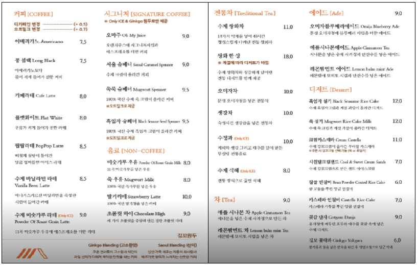 ☕ 전통과 현대가 공존하는 메뉴 구성
