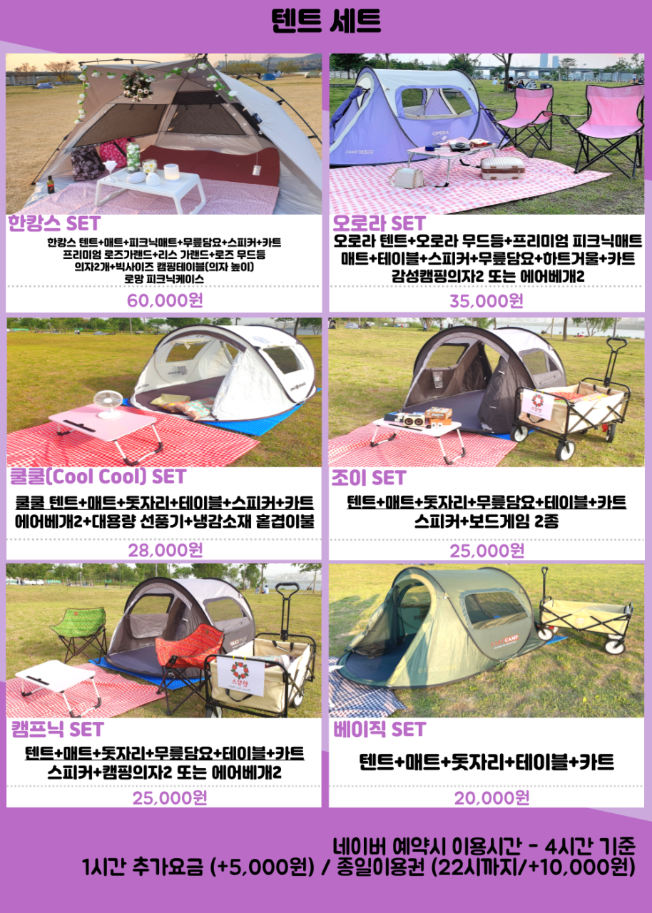 특징 : 여의도에서 유명한 텐트 등 대여 업체로 다양한 물품들이 준비되어 있어서 친구들이나 가족들과 여유로운 시간을 보낼 수 있어요. 물품 상태도 깨끗하게 잘 준비되어 있어서 사용하기에도 너무 좋아요.
