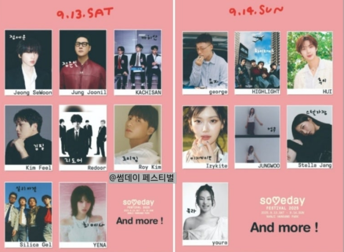 올해 썸데이 페스티벌에는 다양한 아티스트들이 참여할 예정이에요. 다수의 히트곡으로 세대를 아우르는 인기 아티스트들이 무대에 오르며, 그들의 멋진 공연을 직접 관람할 수 있는 기회가 주어져요. 각 아티스트의 공연 시간과 세부 사항은 공식 홈페이지나 SNS를 통해 확인할 수 있으니, 미리 체크해 보세요!
