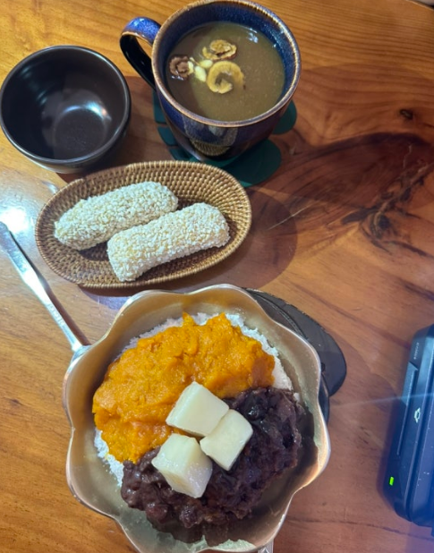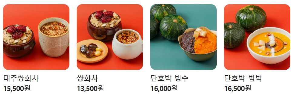 그중에 인기 메뉴인 쌍화차와 대추 쌍화차는 진한 한방 맛과 고소한 견과류가 어우러져 맛도 좋으면서 몸보신에도 좋고, 단호박 빙수는 단호박의 담백한 맛이 정말 맛있답니다.