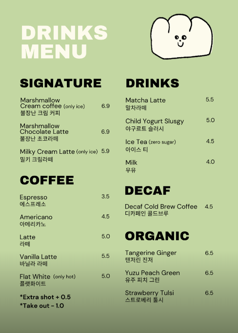 이곳이 유명해진 이유 중 하나는 겨울엔 붕어빵의 성지로, 따뜻해지는 요즘엔 망고빙수와 소금빵 샌드위치, 요구르트 슬러시 등 독특한 메뉴를 제공하는 성수동 카페입니다.