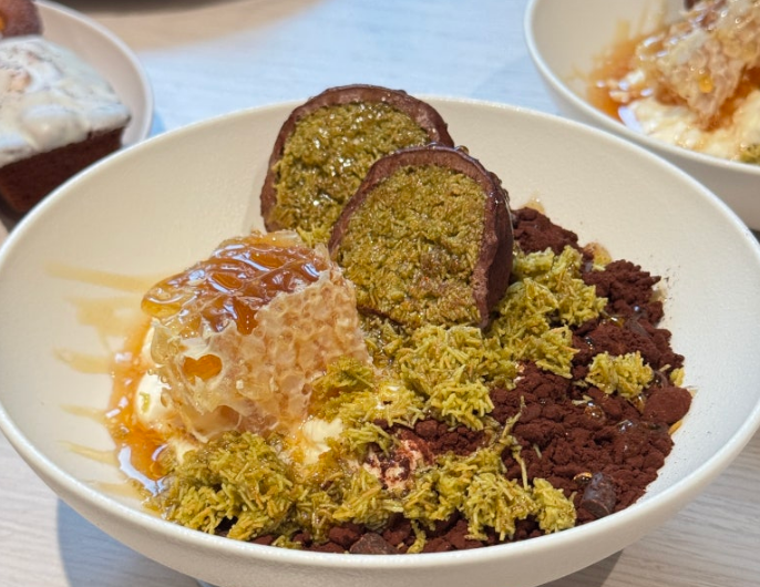 그리고, 벌집채로 들어가는 리얼허니요거트볼은 정말 신선하고 너무 맛있어요. 그중에, 두바이쫀득요거트볼은 부드러운 그릭요거트 위에 두쫀쿠와 두바이 초콜릿이 올라가 있어, 색다른 맛을 느낄 수 있어서 정말 추천해요.