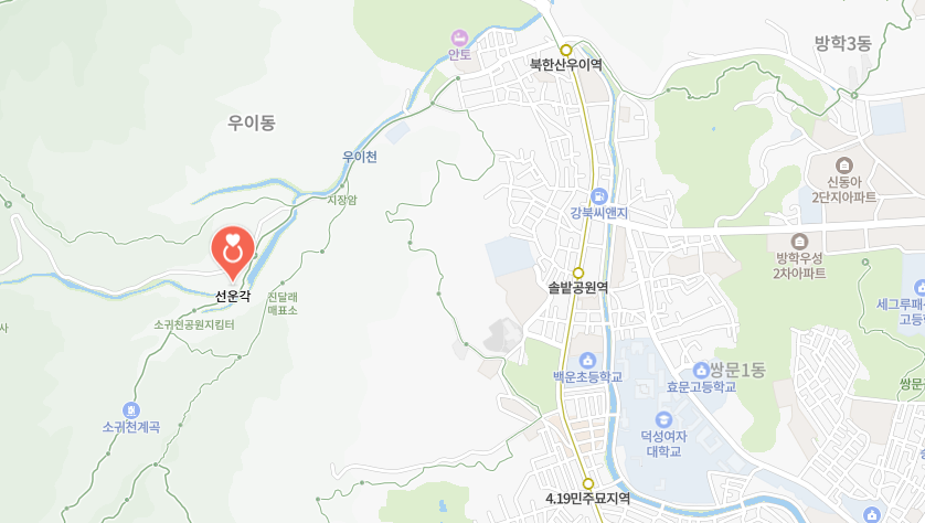 선운각은 서울 강북구 삼양로 173길 223에 위치해 있어요. 북한산의 아름다운 경치를 배경으로 하고 있어서, 자연과 함께하는 힐링의 공간으로 제격이랍니다. 대중교통으로도 쉽게 접근할 수 있어, 지하철과 버스를 이용하면 편리하게 방문할 수 있어요. 주말에는 대관이나 결혼식이 있을 수 있으니, 미리 확인하고 가는 게 좋겠어요.