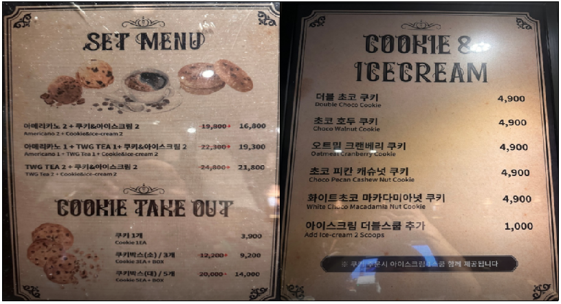 - 아이스크림 & 쿠키 세트 : 쿠키에 아이스크림을 곁들이면 달콤함이 배가돼 디저트로 최고라는 리뷰가 많습니다.