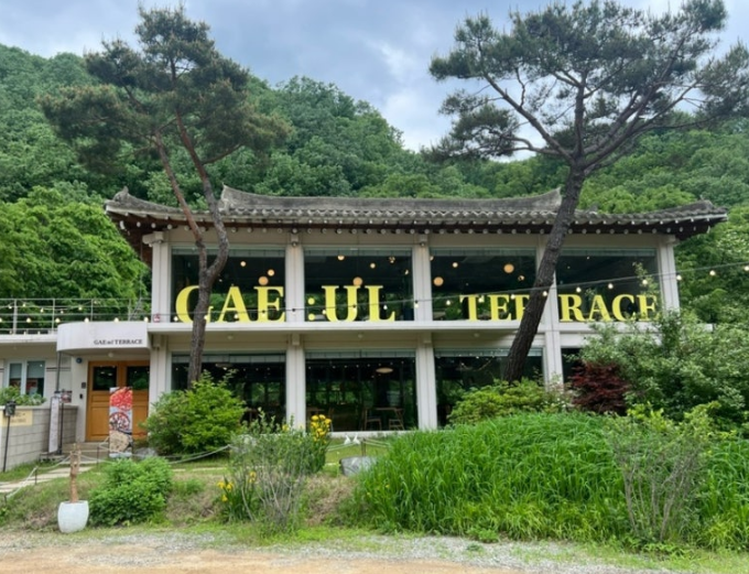 개울테라스 주변은 자연으로 둘러싸여 있어요. 계곡의 맑은 물소리와 함께 시원한 바람을 느끼며 힐링할 수 있는 공간이죠.