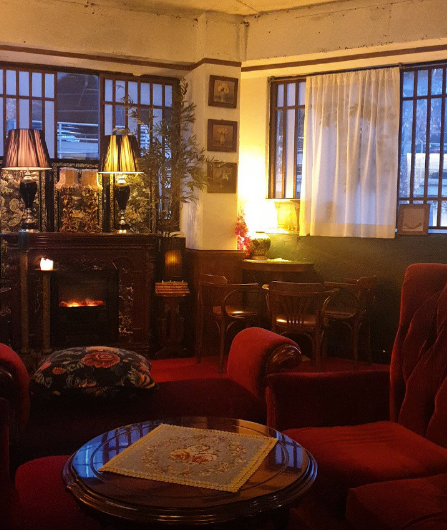 카페 내부에는 홍콩 거리에서 볼 법한 네온사인과 빈티지 가구들이 배치되어 있고, 조명은 전체적으로 따뜻하고 약간 어두운 톤이라 분위기가 아늑하게 느껴지는 곳입니다.