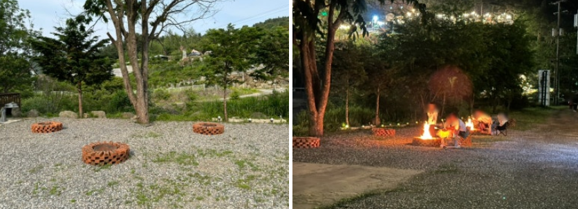 또한, 펜션 내에서 불멍을 즐길 수 있는 공간도 마련되어 있어 저녁에 따뜻한 불빛 아래에서 힐링할 수 있답니다.