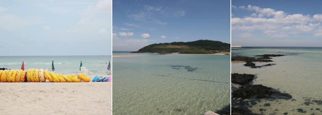 특 징 : 제주의 함덕 해수욕장은 맑고 투명한 바다로 유명해요. 여유롭게 해변을 거닐며 제주도의 자연을 만끽할 수 있어요. 함덕 해수욕장은 특히 해수욕과 함께 스노클링을 즐기기에 좋은 장소로, 바닷속의 아름다운 풍경을 감상할 수 있어요.