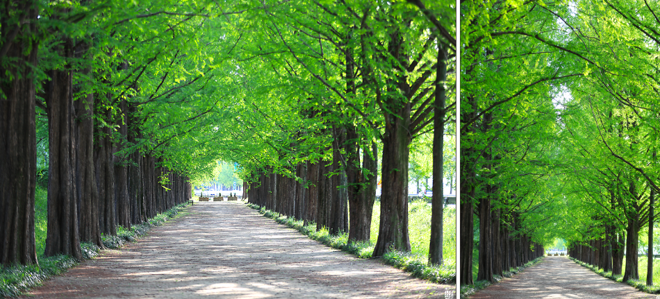 길 양옆으로 쭉 뻗은 메타세쿼이아 나무들이 만들어내는 그늘 아래에서 산책하면 정말 기분이 좋아요. 이곳은 사진 찍기에도 좋은 장소라서, 인생샷을 남기기에도 안성맞춤이에요.
