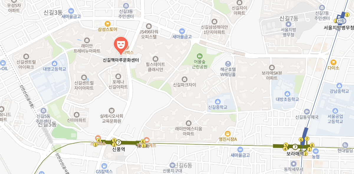 신길책마루문화센터는 영등포구 신길로 131에 위치해 있어요. 대중교통을 이용하면 신길역에서 도보로 약 10분 정도 소요되며, 버스를 이용할 경우 여러 노선이 지나가니 접근성이 매우 좋아요. 주변에 주차 공간도 마련되어 있어 자가용 이용 시에도 편리하답니다.