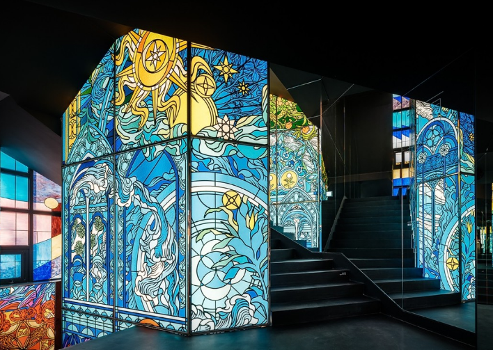 이곳은 층마다 다른 공간 구성과 스테인드글라스가 보여주는 다채로움을 즐길 수 있어서 너무 좋아요.