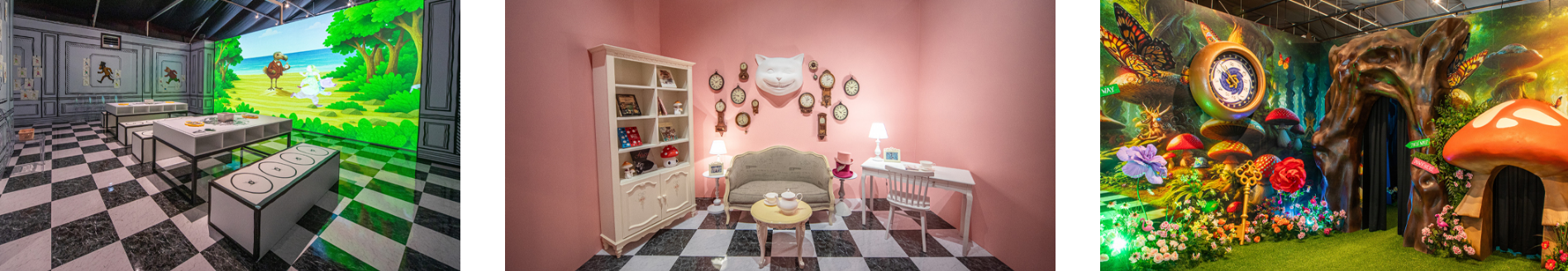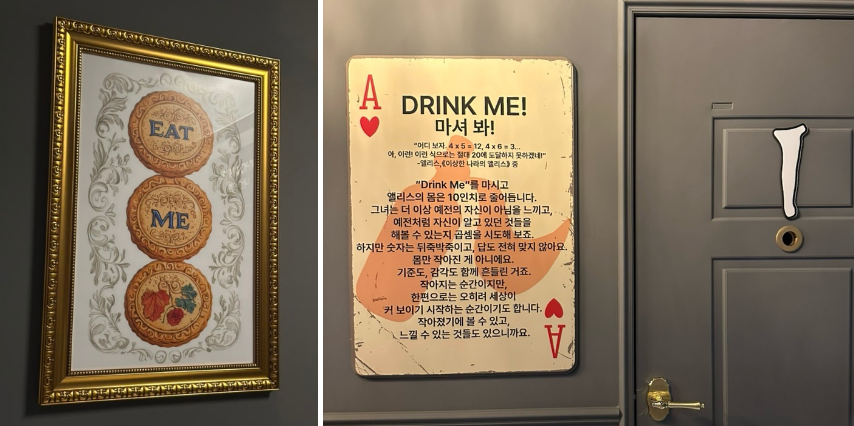 여수의 디오션리조트 내에 위치한 앨리스 마이 원더랜드는 '이상한 나라의 앨리스'를 테마로 한 전시로, 다양한 포토존과 체험 공간이 마련되어 있어요.