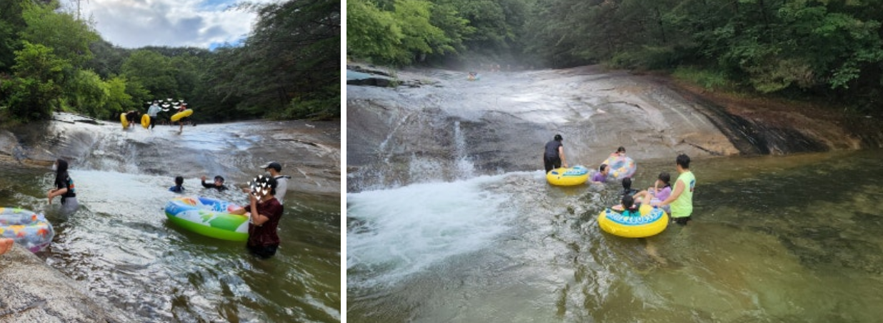 이곳은 천연 미끄럼틀이 있는 워터파크 부럽지 않아서 가족과 함께 물놀이를 즐기기에 최적의 장소랍니다. 계곡 주변에는 그늘이 많아 여름철에도 시원하게 즐길 수 있어요. 물이 깨끗하고 깊지 않아 아이들과 함께 안전하게 놀 수 있는 곳이에요.