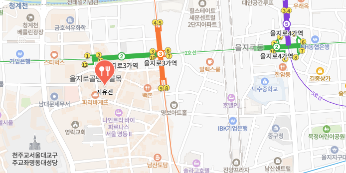 지유켄은 을지로 3가 역에서 가까운 골목 안쪽에 있어 대중교통을 이용해 방문하기 편리해요.