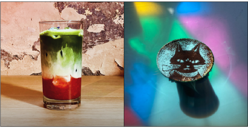 음료는 딸기말차라테와 귀여운 고양이 캐릭터가 그려진 베로나 라테가 인기 있어서 친구들과 함께 나눠 마시기에도 좋고, 따뜻한 음료와 함께하는 크리스마스 분위기는 정말 특별하답니다.