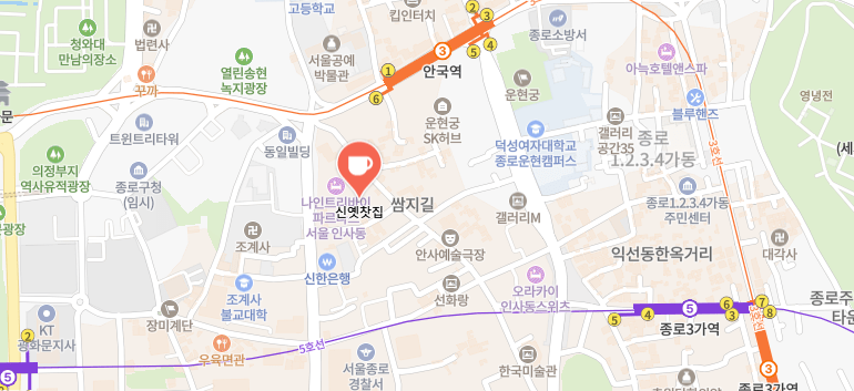 인사동 메인거리에서 조금만 안쪽으로 들어가면 간판이 보이고, 경복궁과 종각 사이에 위치해 접근성도 좋은 곳이랍니다. 지하철 3호선 안국역 또는 1호선 종각역에서 도보로 이동 가능해 관광 코스로 함께 들르기에도 좋아요.