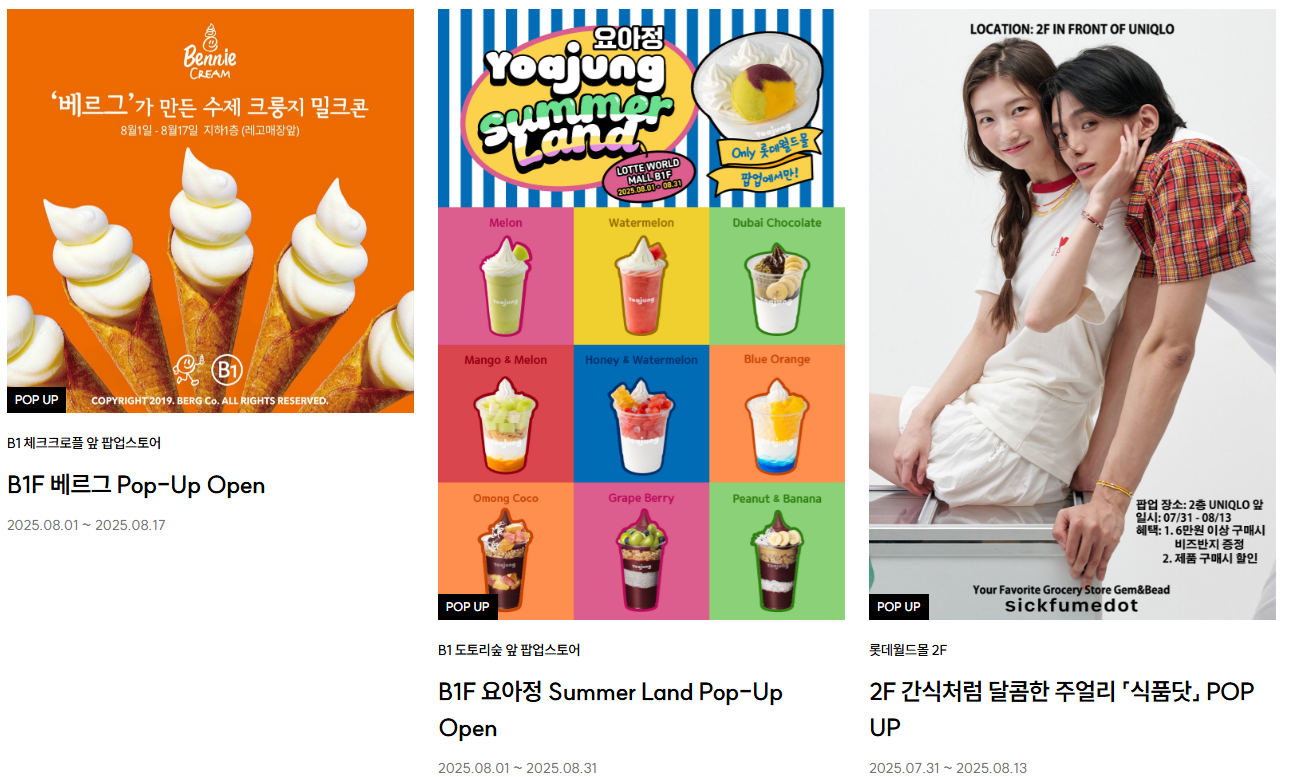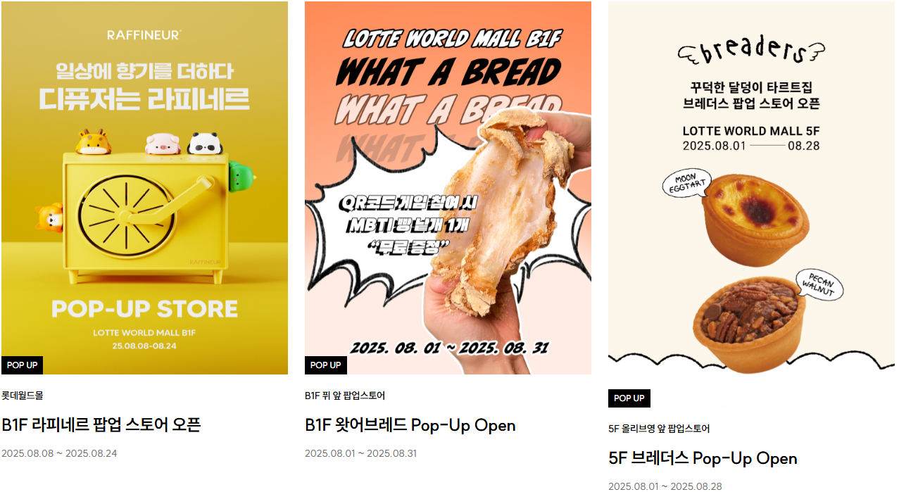 다양한 팝업 스토어는 트렌디한 팝업스토어와 다양한 이벤트가 열리는 공간이에요.