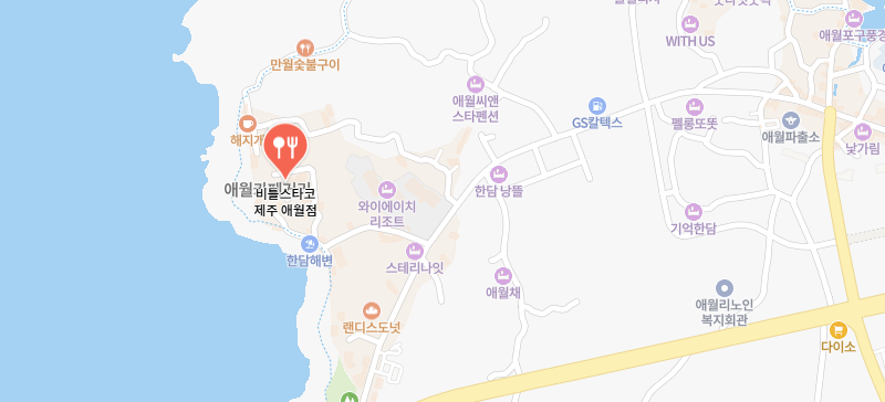 비틀스타코 애월점은 제주특별자치도 제주시 애월읍 애월로1길 24-9에 위치하고 있어요. 애월 카페거리, 바다와 가까운 관광 명소들과 인접해 있어서 여행 중 가벼운 식사 장소로 찾기 좋아요. 또한 매장 앞에 무인주차장이 있어 차량 여행객들도 편리하게 이용할 수 있답니다.