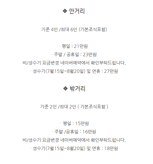 한동곶길의 객실 가격은 대체로 1박 약 18만 원대부터 구성되어 있어요. 계절, 요일, 인원수에 따라 변동이 크지만, 제주 감성 숙소 치고는 비교적 합리적인 가성비 옵션 중 하나입니다. 일반 객실 외에도 가족·단체 여행을 위한 독채 스타일 객실이 있어 다양한 여행 스타일에 만족감을 주는 곳이에요.